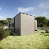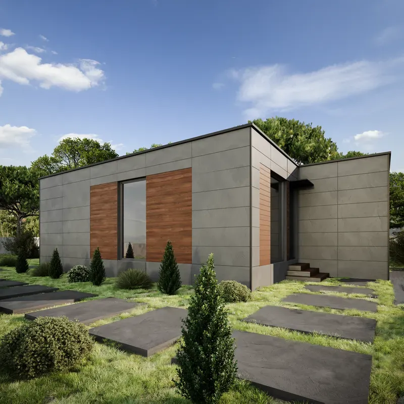 - Fachada ventilada con opción de acabado en placas de fibrocemento de la marca NICHIHA, madera termo tratada o chapa grecada. Además, es posible combinar diferentes materiales para lograr un diseño personalizado y único. (color por definir)