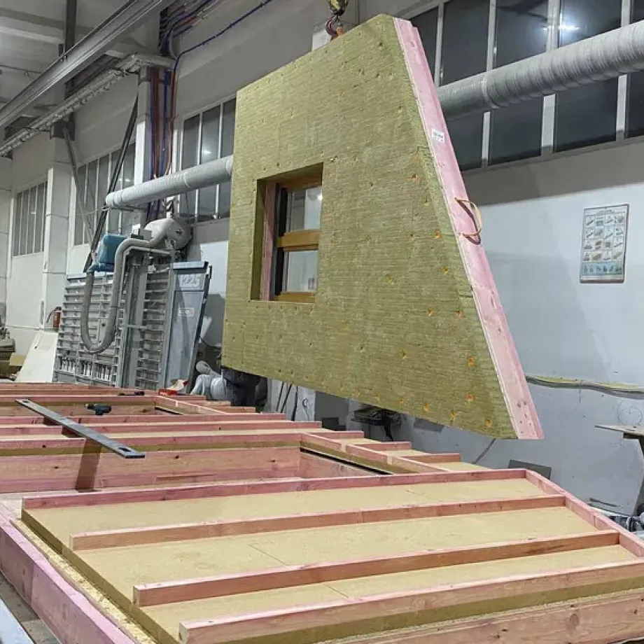 The structures are manufactured prior to installation on the construction site. Elements such as beams, columns, panels and other structural components are produced in the factory, then transported to the construction site for assembly. Its construction is faster and more efficient than traditional construction, because the components are already ready for installation on site. It is fast, safe, clean, with little waste and highly energy efficient. Made up of a “sandwich” type panel with a list of all types of insulating materials.